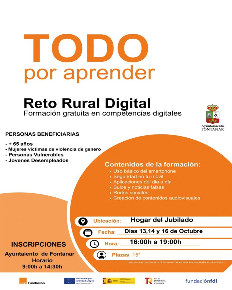 El curso, con plazas limitadas a 15 participantes empadronados en Fontanar, abordar谩 contenidos pr谩cticos como el uso b谩sico del smartphone, la seguridad en el m贸vil, el manejo de aplicaciones cotidianas y la identificaci贸n de bulos en internet. Con horario de 16:00 a 19:00 horas, esta acci贸n formativa busca facilitar el d铆a a d铆a y fomentar la inclusi贸n social en la era digital, gracias a la financiaci贸n de la Uni贸n Europea y la Fundaci贸n FDI.