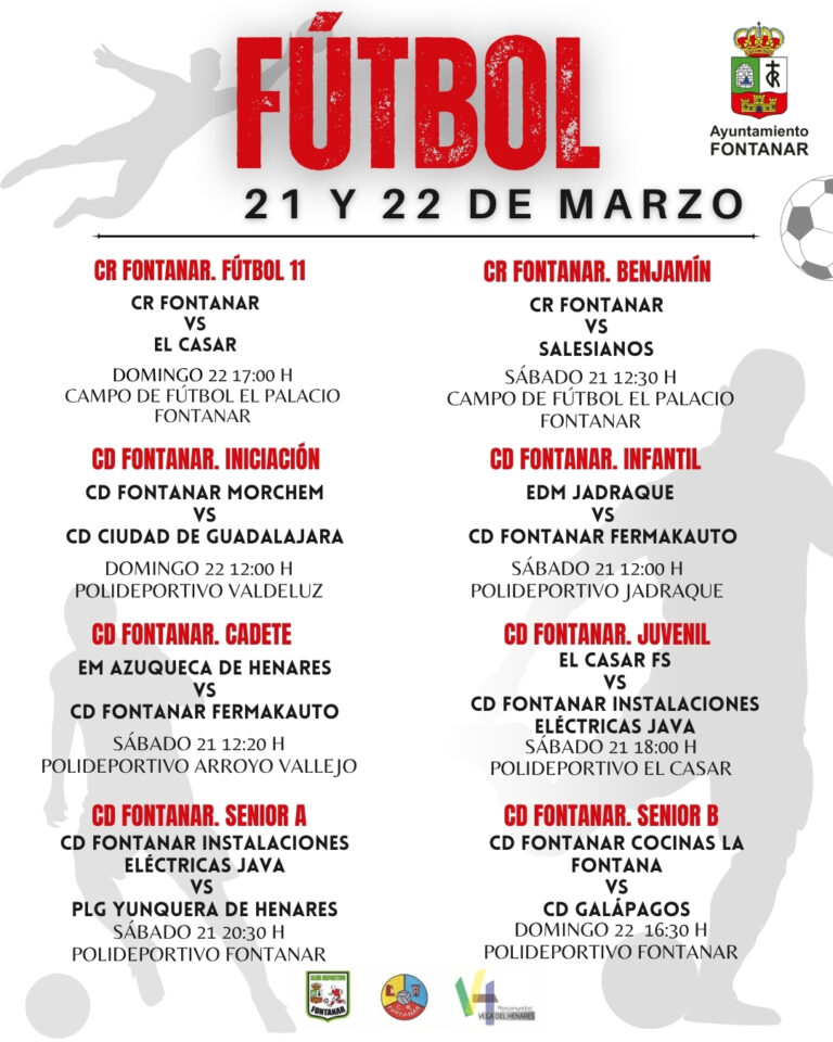 Os dejamos los horarios de las competiciones deportivas del fin de semana con partidos del Club Deportivo Fontanar y del Club Recreativo Fontanar en distintas categorรญas.