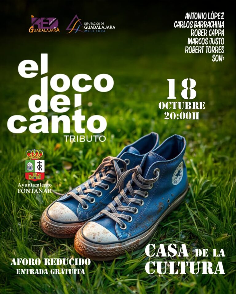El prรณximo sรกbado 18 de octubre a las 20:00 horas, el Ayuntamiento de Fontanar acogerรก el concierto tributo ยซEl Loco del Cantoยป, un homenaje a la banda espaรฑola ยซEl Canto del Locoยป. El evento, de entrada gratuita, tendrรก lugar en la Casa de la Cultura y se enmarca dentro de la programaciรณn cultural.