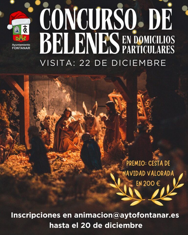 La visita para valorar los belenes inscritos tendr谩 lugar el pr贸ximo 22 de diciembre. Aquellos que deseen participar deben inscribirse antes del 20 de diciembre enviando un correo a animacion@aytofontanar.es. El ganador recibir谩 como premio una cesta de Navidad valorada en 200 euros.