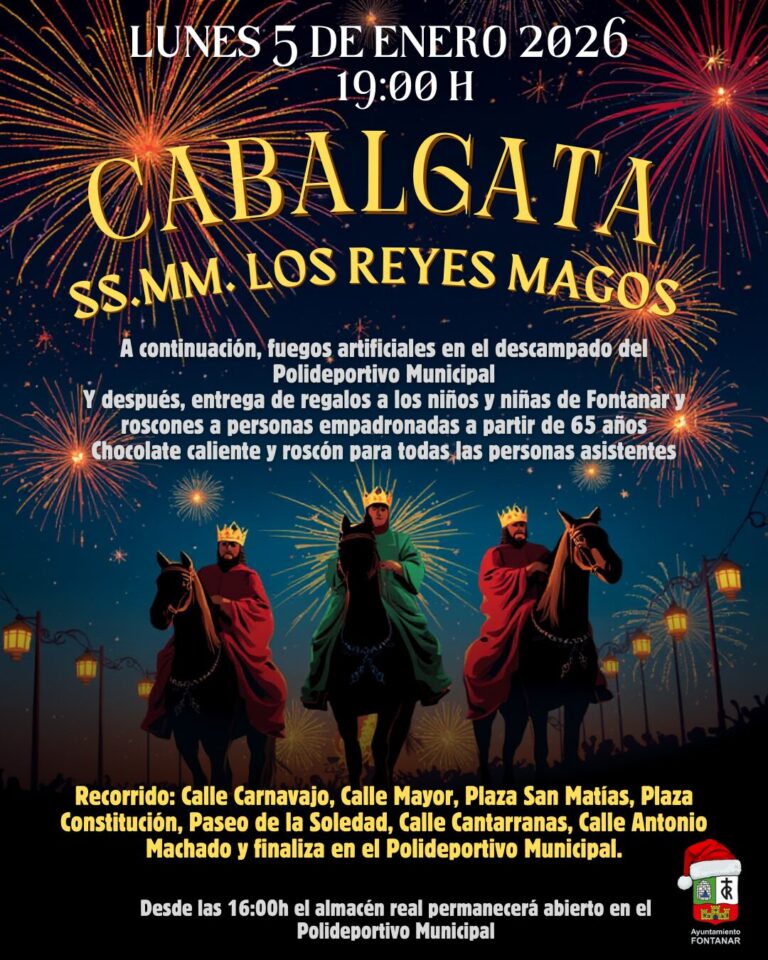 Maรฑana lunes, 5 de enero de 2026, Fontanar vivirรก una de sus citas mรกs esperadas del calendario navideรฑo: la Cabalgata de Sus Majestades los Reyes Magos de Oriente. El desfile darรก comienzo a las 19:00 horas, recorriendo las principales calles y plazas de la localidad para que niรฑos y adultos puedan recibir a Melchor, Gaspar y Baltasar.