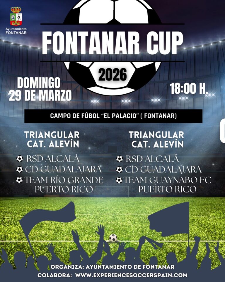 El prรณximo domingo 29 de marzo, el campo de fรบtbol ยซEl Palacioยป de Fontanar acogerรก la primera ediciรณn de la Fontanar Cup 2026, un triangular de categorรญa alevรญn que reunirรก a tres equipos de dos continentes. El Team Rรญo Grande de Puerto Rico serรก el gran atractivo internacional de la jornada, midiรฉndose a dos conjuntos de gran tradiciรณn en el fรบtbol base castellano-manchego como son la RSD Alcalรก y el CD Guadalajara. La expediciรณn puertorriqueรฑa llega a la localidad guadalajareรฑa con la ilusiรณn de medirse a equipos espaรฑoles y vivir una enriquecedora experiencia deportiva y cultural en su visita a nuestro paรญs.