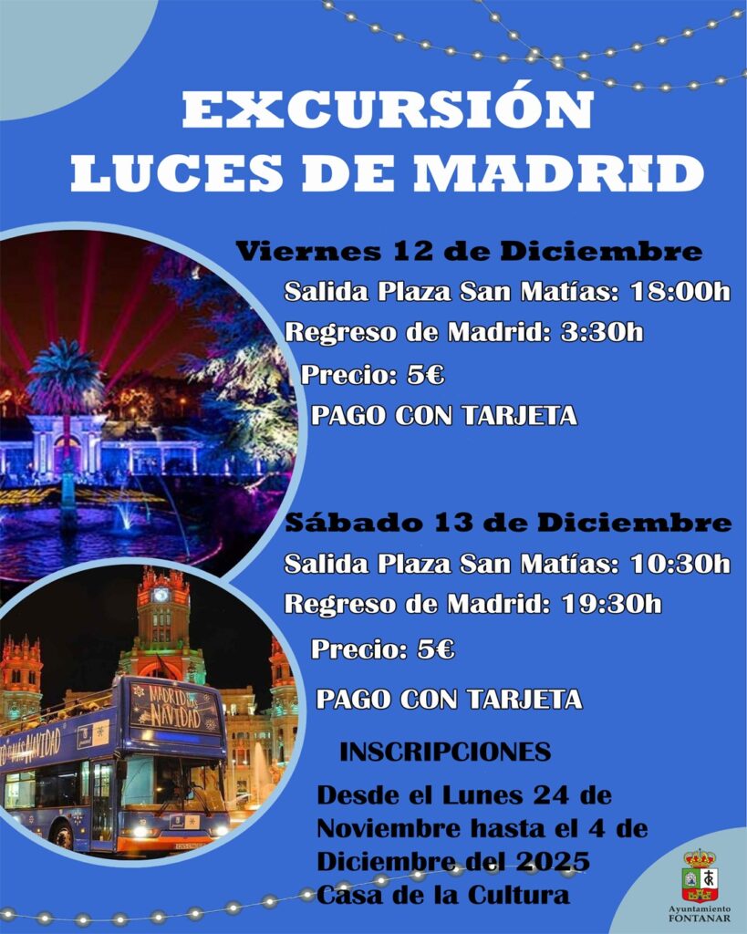 El Ayuntamiento de Fontanar ha abierto el plazo de inscripción para la excursión navideña ‘Luces de Madrid’, que este año