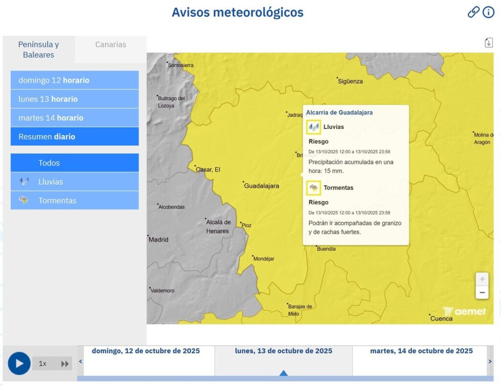 La Agencia Estatal de Meteorología (AEMET) ha activado nivel de AVISO AMARILLO por lluvias y tormentas en la provincia de