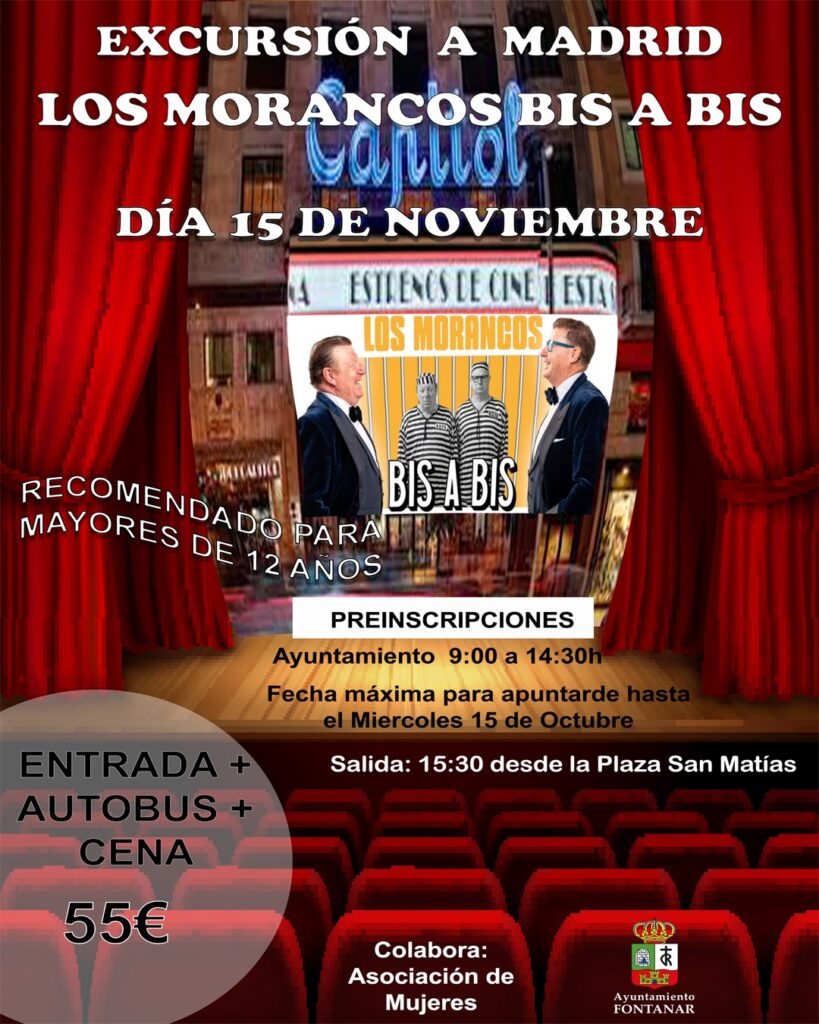 El próximo 15 de noviembre se realizará una excursión a Madrid para asistir al espectáculo de Los Morancos Bis a