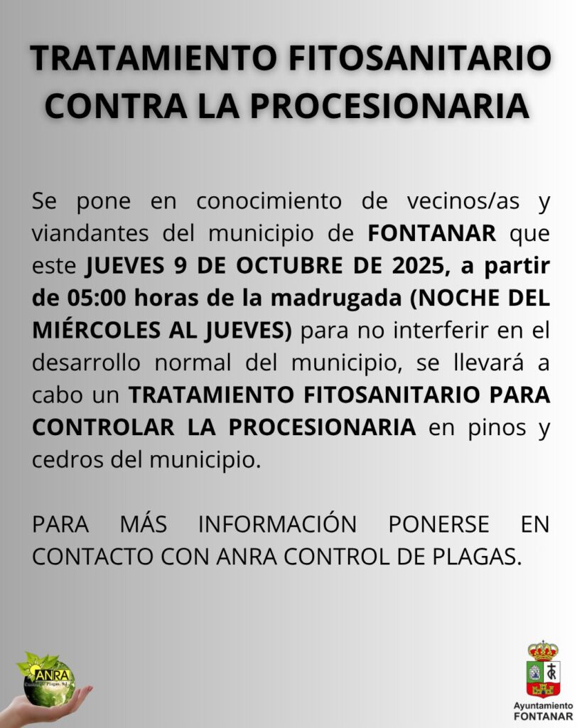 El Consistorio de Fontanar ha contratado los servicios ANRA CONTROL DE PLAGAS para llevar a cabo un tratamiento fitosanitario en