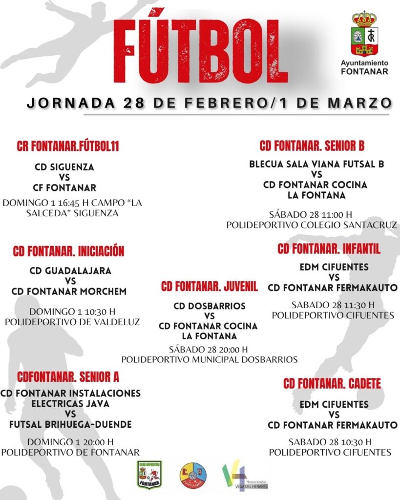 Os dejamos los horarios de las competiciones deportivas del fin de semana con partidos del Club Deportivo Fontanar y del