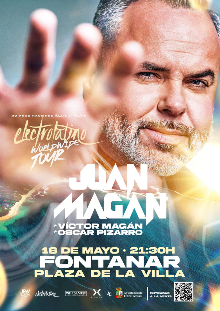 El reconocido DJ y productor 𝐉𝐮𝐚𝐧 𝐌𝐚𝐠𝐚́𝐧, máximo exponente del movimiento electrolatino, actuará el próximo 𝟏𝟔 𝐝𝐞 𝐦𝐚𝐲𝐨 en la