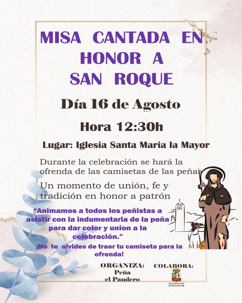 El próximo 16 de agosto a las 12:30 horas, la Iglesia Santa María la Mayor de Fontanar acogerá una Misa