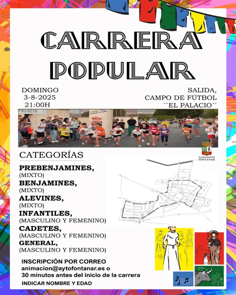 El próximo domingo 3 de agosto a las 21:00 horas, Fontanar acogerá una Carrera Popular abierta a todas las edades