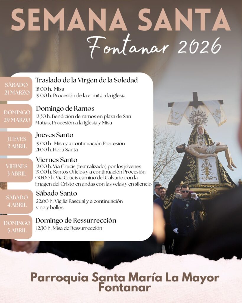 La Parroquia de Fontanar, Santa María la Mayor, ha dado a conocer el programa de actos que conformarán la Semana