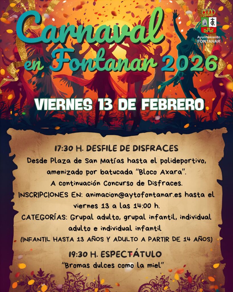 El próximo viernes 13 de febrero, Fontanar se vestirá de fiesta para celebrar una nueva edición de su Carnaval. La