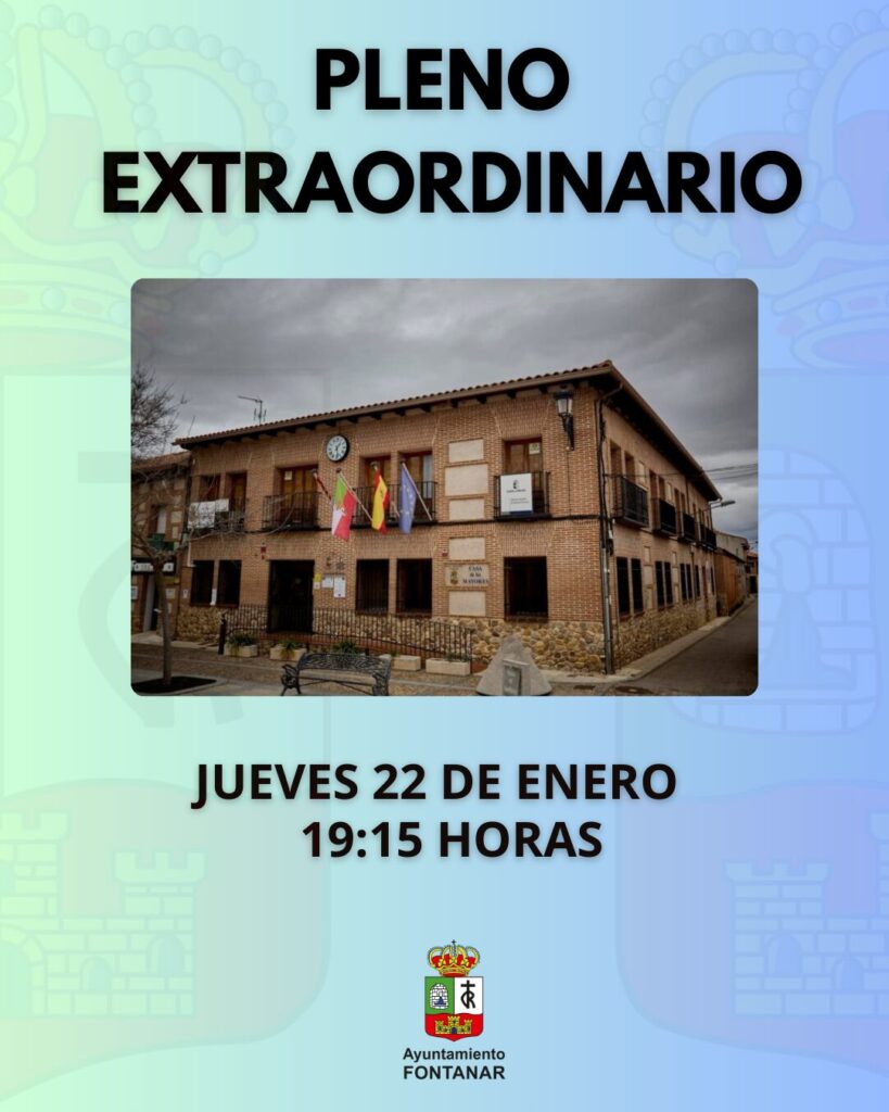 El Ayuntamiento de Fontanar ha convocado un Pleno Extraordinario que tendrá lugar este jueves 22 de enero a las 19:15