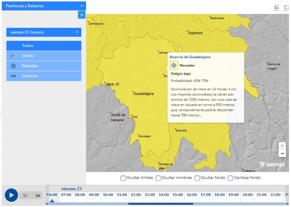 La Agencia Estatal de Meteorología (AEMET) ha emitido un aviso de nivel amarillo por nevadas que afectará a varias comarcas