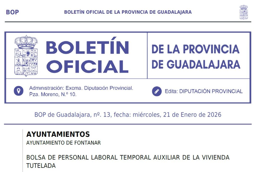 El Ayuntamiento de Fontanar ha convocado un proceso selectivo para la creación de una bolsa de empleo temporal de Auxiliar